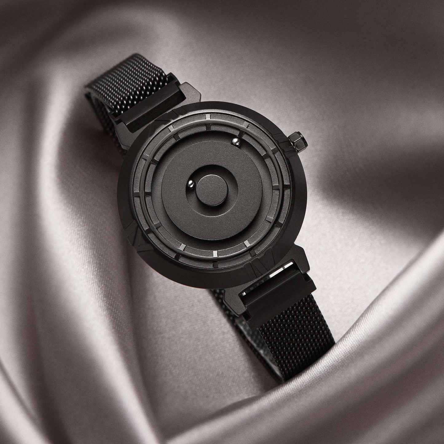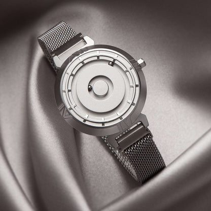 This women's magnetic watch features a polished outer ring and a frosted texture on the remaining parts. Two magnetic balls replace the hands, accurately running on the dial tracks. The inner ball represents the minutes while the outer ball indicates the hours, ensuring precise timekeeping and stable magnetic force.