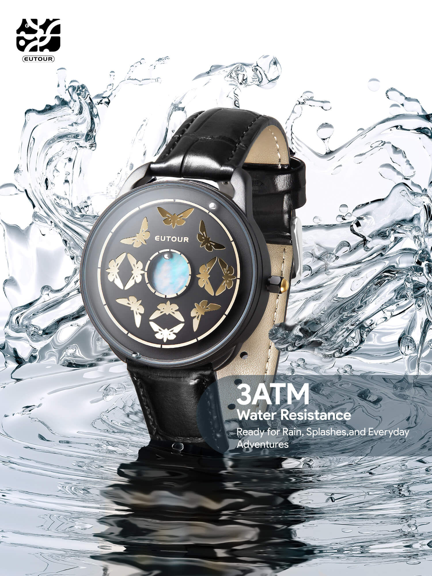A6:All EUTOUR watches are designed for daily water resistance, suitable for hand washing or rain. However, specific waterproof ratings vary by collection. You can find the precise ATM rating for this model in the 'Specifications & Materials' section on this page.